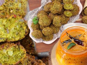 Hari Moong Daal Pakora with Chutney