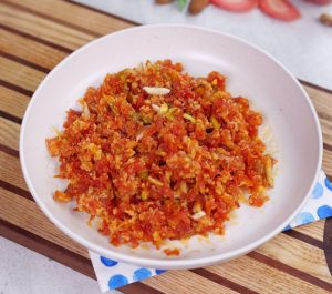 -Bowl mein gajarko grater ki madad sa grate ker lein (1 & ½ Cup).