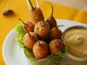 Coat in all-purpose flour and dip into beaten eggs then coat in bread crumbs then again dip into beaten eggs and coat in bread crumbs (Makes 20-25).