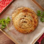 Gently press karein aur baking tray per butter paper laga ker rakh dein aur fork ki madad sa prick ker lein aur brush ki madad sa doodh laga lein (makes 3).