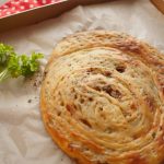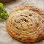 Dough per maida chirak dein aur rolling pin ki madad sa bail lein (roll as thin as possible).