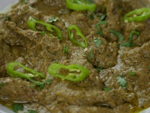 Garnish with green chilli,fresh coriander and serve with naan.