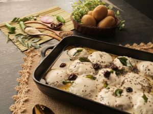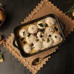 -In a serving dish,add aalo baray,drizzle prepared yogurt mixture,pour tarka & serve!