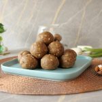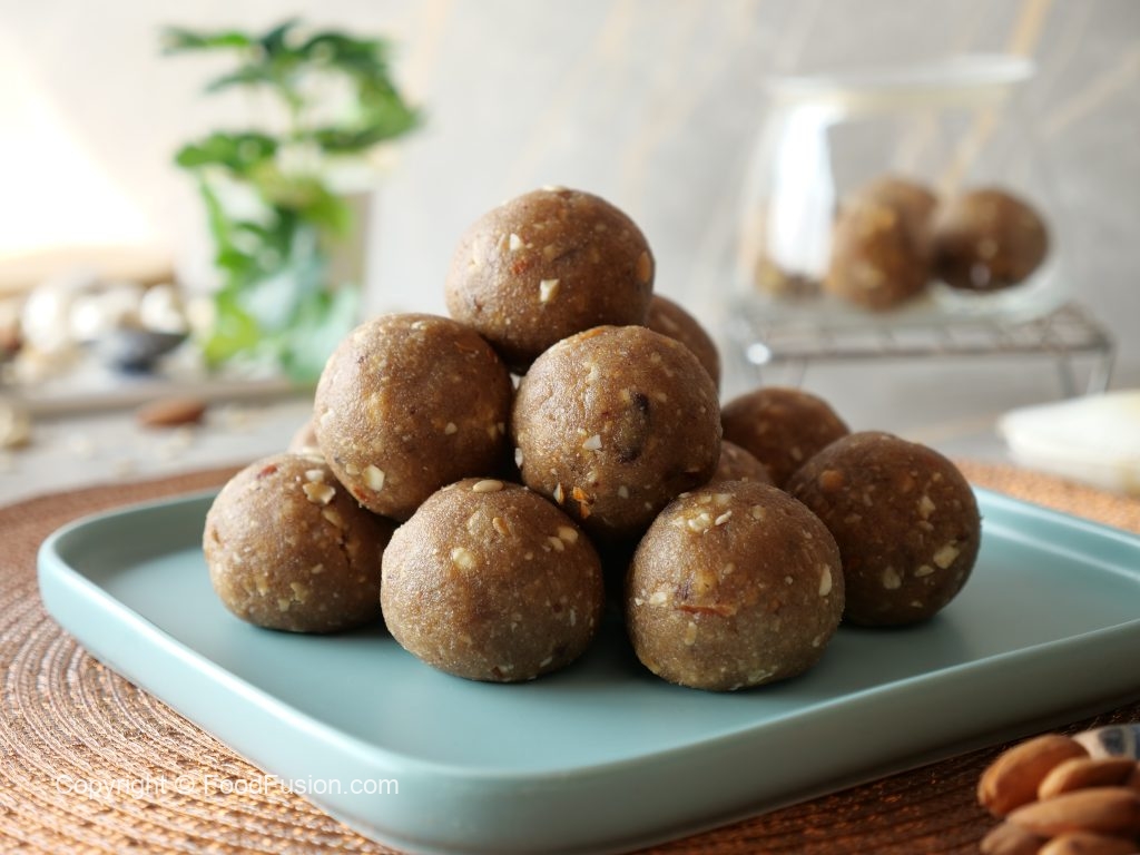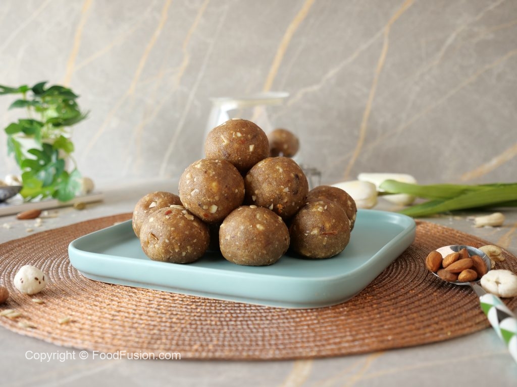 -Grease hands with ghee,take a small quantity of mixture & make laddu of equal sizes (makes 16-18).