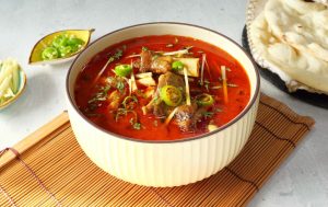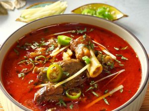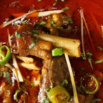 -Add mutton shank & mix well,cover & continue cooking on low flame until meat is tender (approx. 1 hour more).