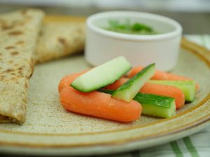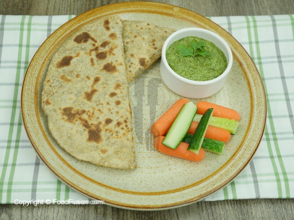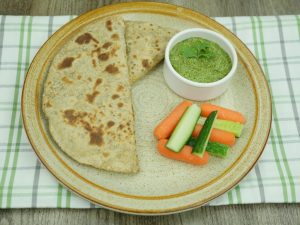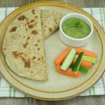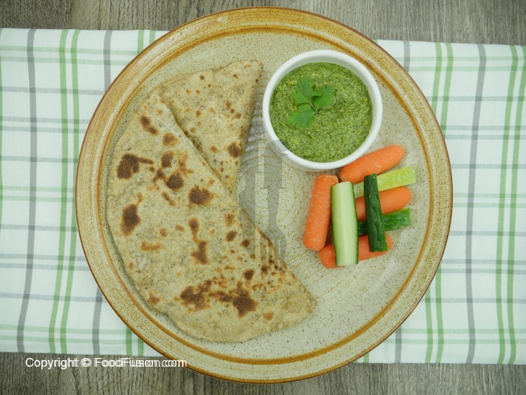 In blender,add garlic,chickpeas,cumin seeds,pink salt,coconut oil,lemon juice,green chilies,fresh coriander, mint leaves and blend until well combined.