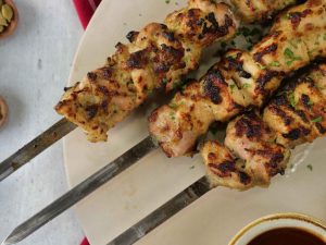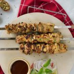 -Thread chicken pieces on metal skewer (makes 5 skewers).