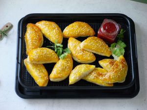 -Apply water on the edges,add prepared filling (1 tbs),fold in D shape & seal properly.