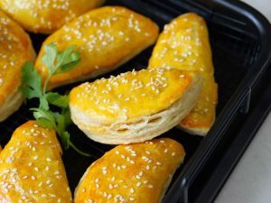 -Apply egg wash & sprinkle sesame seeds (makes 24-26).