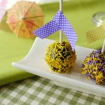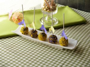 Dip your cake pop sticks into melted cooking chocolate and coat evenly.