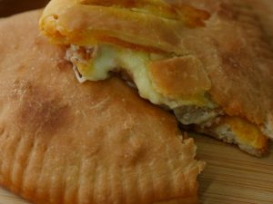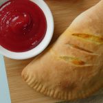 Baking dish per tayyar calzone rakh ker oil sa grease ker lein aur knife ki madad sa surface per marks laga lein (makes 4).