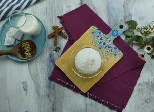 In a serving cup,add chai joshanda ¼ cup,frothed milk ¾ cup,sprinkle cinnamon powder & serve!