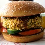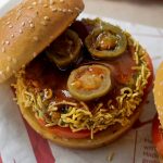 Burger bun mein green chilli sauce dal ker pheela lein,tamatar,kheera,fried patty,jalapeno slices aur tamarind sauce dal dein.