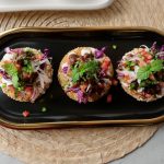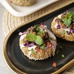 On aalo tikki,add yogurt,cabbage,onion,capsicum,tomato,fresh coriander & prepared chutney.