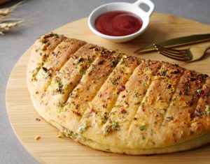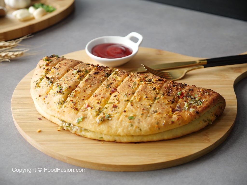 Baking ka bad,garlic herbed butter laga ker serve karein!