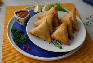 Brush paneer samosa with oil & bake in preheated oven at 200C 20-25 minutes (flip in between once after 15 minutes).