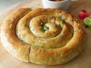 -Place the braided dough in a baking tray (greased & lined with baking paper).