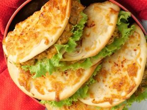-Add mix cheese & apply water in the corners with the help of brush,carefully fold the braided side over the filling,sealing the edges gently.