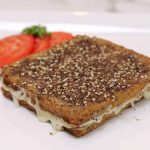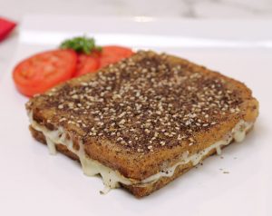 -Grease griddle with olive oil,dip bread slices in prepared mixture & place on heated griddle,sprinkle prepared zataar seasoning  & cook on medium low flame until light golden than flip,add mozzarella cheese,cheddar cheese & sprinkle zaatar seasoning then flip another slice to make a sandwich & cook on low flame until cheese melts (makes 2) & serve!