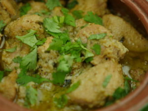 Cover and cook until chicken is done and oil separates (low flame 15-20 minutes).