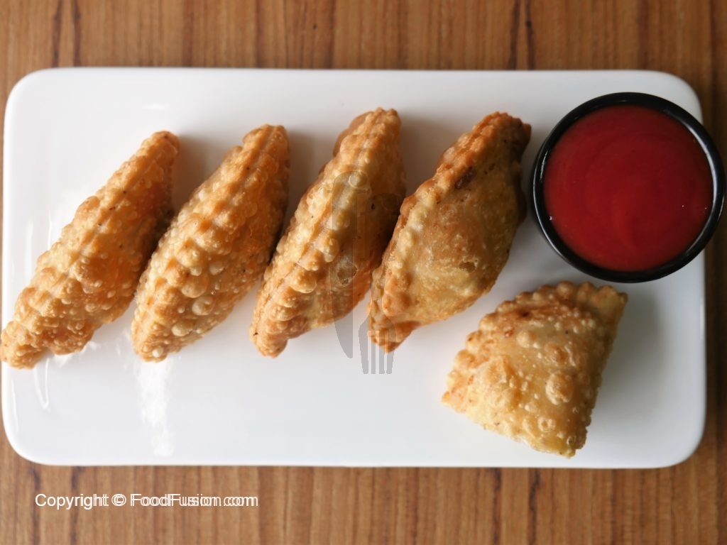 Take a dough,add chicken filling and mozzarella cheese,apply water at the edges,fold it and press and seal the edges with cookie cutter.