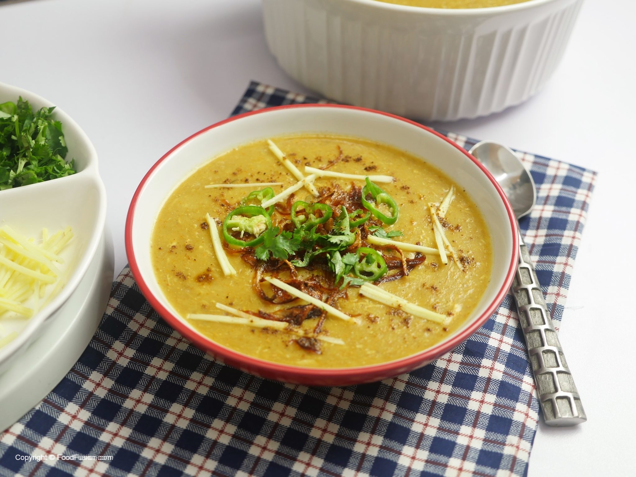 Frying pan mein oil aur pyaz dal ker golden brown hunay tak fry ker lein,fried pyaz ko haleem mixture mein dal ker ache tarhan mix ker lein.