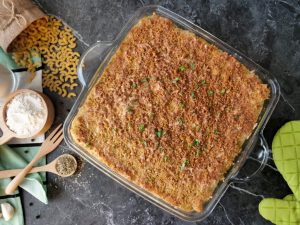 Breadcrumbs & cheese mixture sa dal ker top ko cover ker lein.