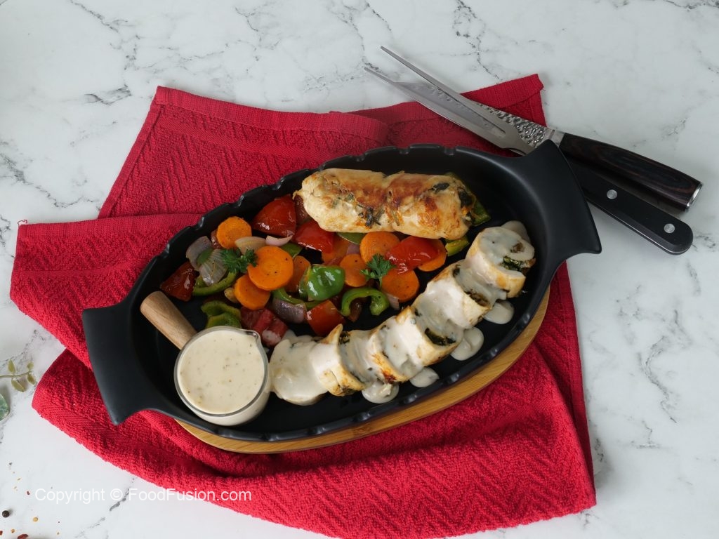 Restaurant Style Chicken Roulade recipe with Cheese Sauce. A perfect recipe to impress your guests. #HappyCookingToYou #FoodFusion #OlpersMilk #Olpers