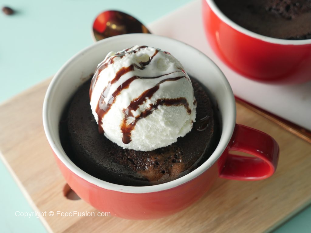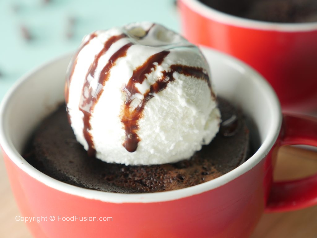 Mug mein anda,makhan,neem garam doodh,vanilla essence,maida,baking powder,bareek cheeni, namak aur cocoa powder dal ker ache tarhan mix ker lein.