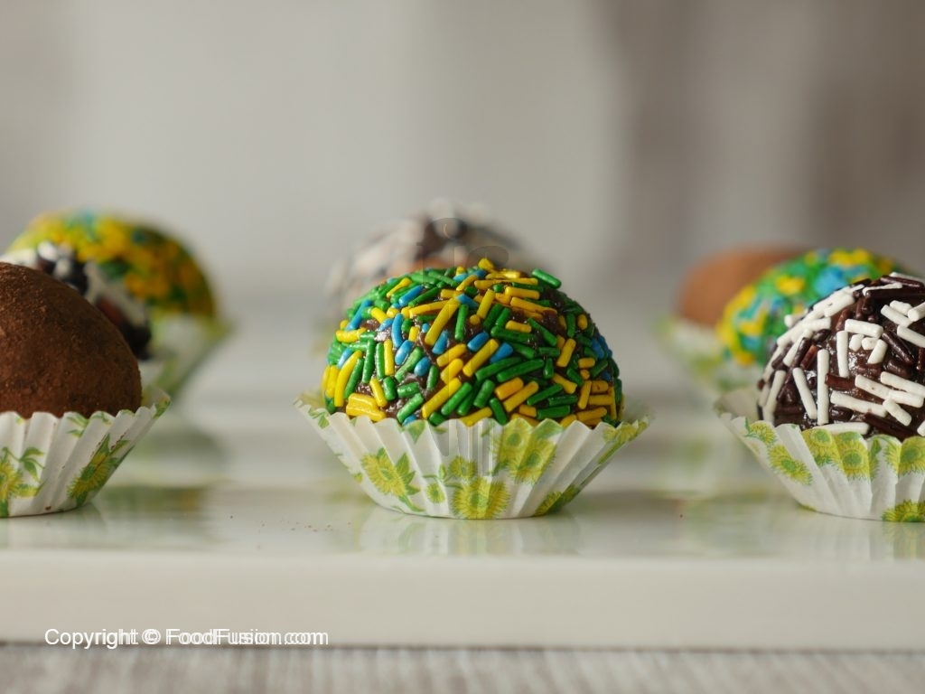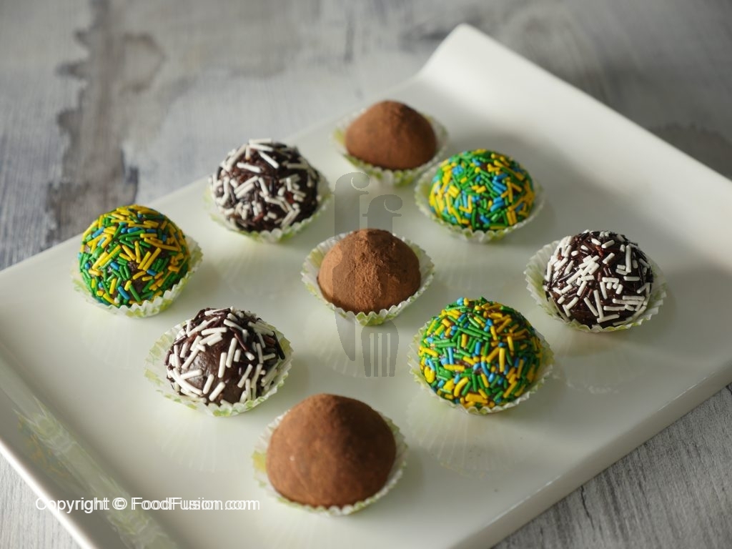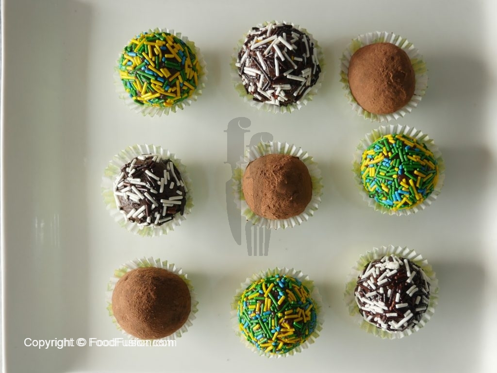 Coat in cocoa powder or multi sprinkles.