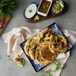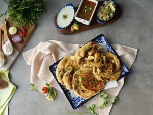 Apply butter and sprinkle fresh coriander & serve with raita!