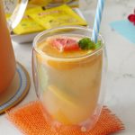Jug mein ice cubes,lemon slices,orange slices,grape fruit slices,tayyar lemon green tea,grape fruit juice,orange juice,lemon juice aur podina dal ker stir ker lein & serve karein!