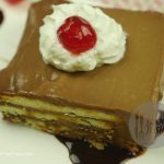 Garnish with chocolate sauce, cherries/strawberries, whipped cream and serve.