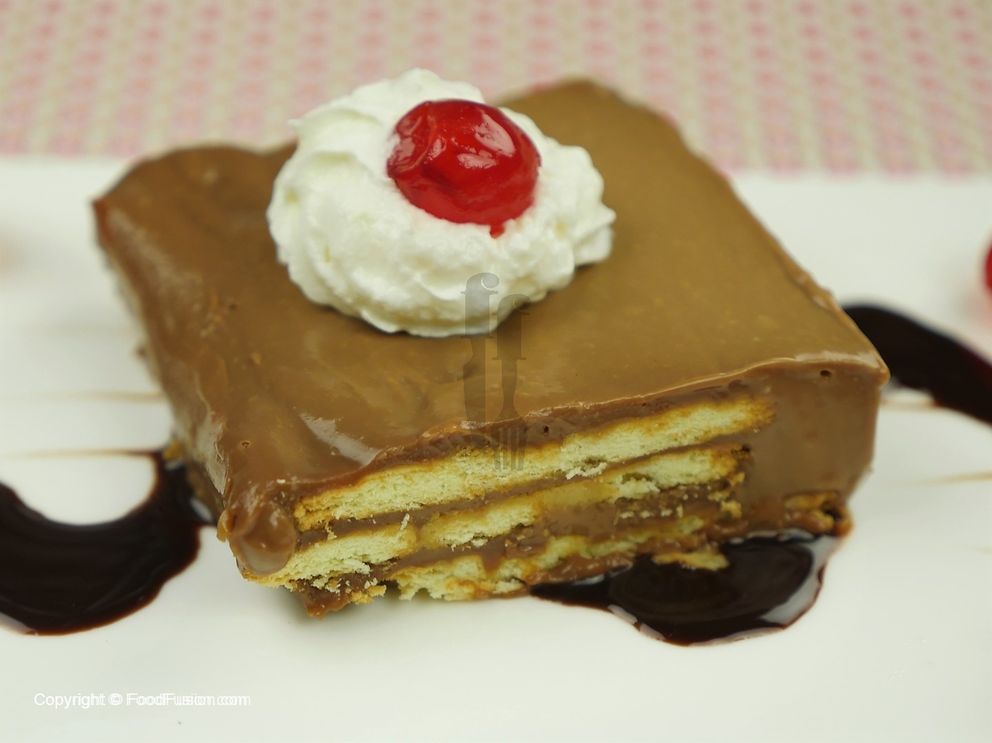 In serving dish, put a layer of biscuits,coffee sauce,chocolate layer then again biscuits, chocolate layer,biscuits,coffee sauce and chocolate sauce .