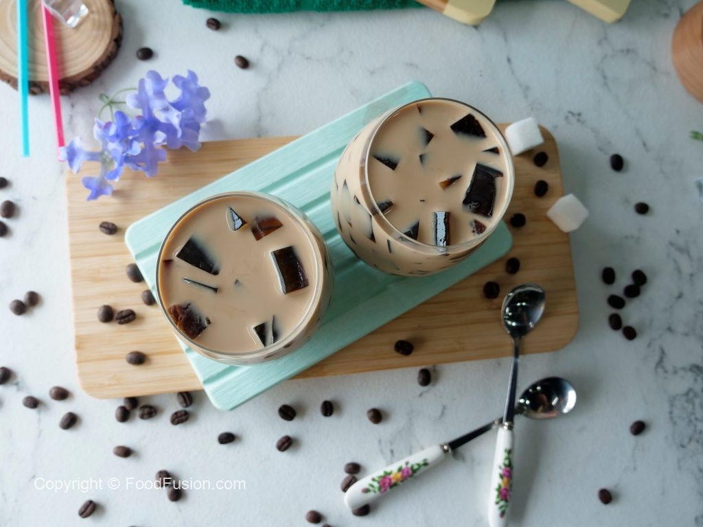 In serving glass,add prepared coffee jelly,prepared cold coffee,stir & serve!