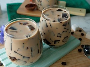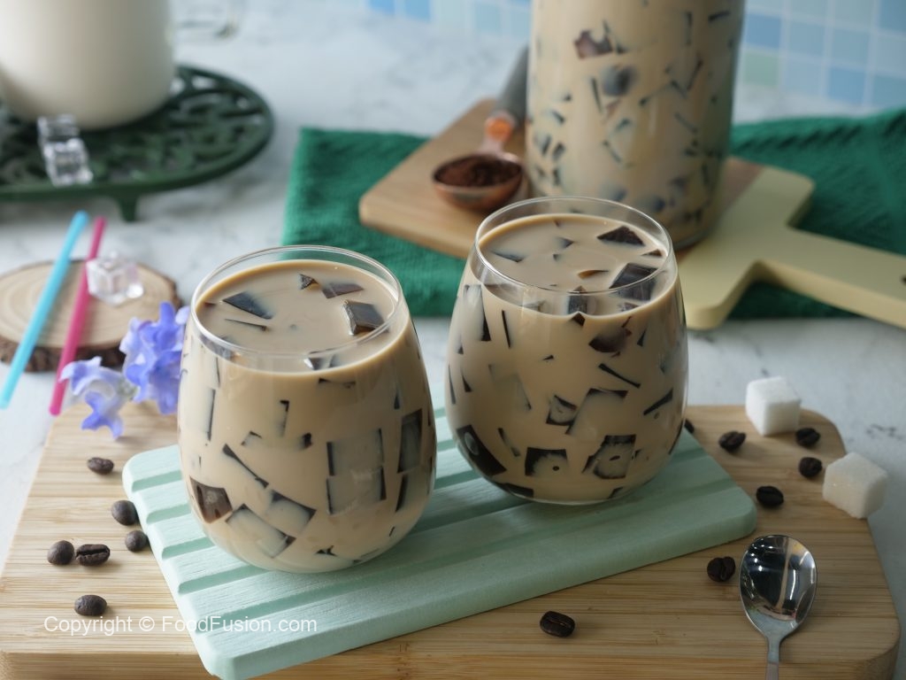 Serving glass mein tayyar coffee jelly aur tayyar cold coffee dal ker stir ker lein & serve karein!