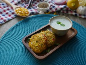 In air fry machine,place corn cutlets,brush oil from both sides and air fry at 180 C for 15 minutes.