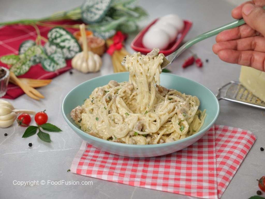 Craving a rich pasta dish? Make Carbonara Spaghetti with Olper’s Cream! Creamy, rich, and delicious, this recipe is perfect for special occasions! Try it at home and treat your loved ones! #OlpersDairyCream #GoodnessBarhao#foodfsuion #araywaah #happycookingtoyou