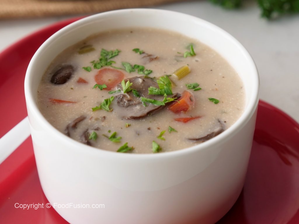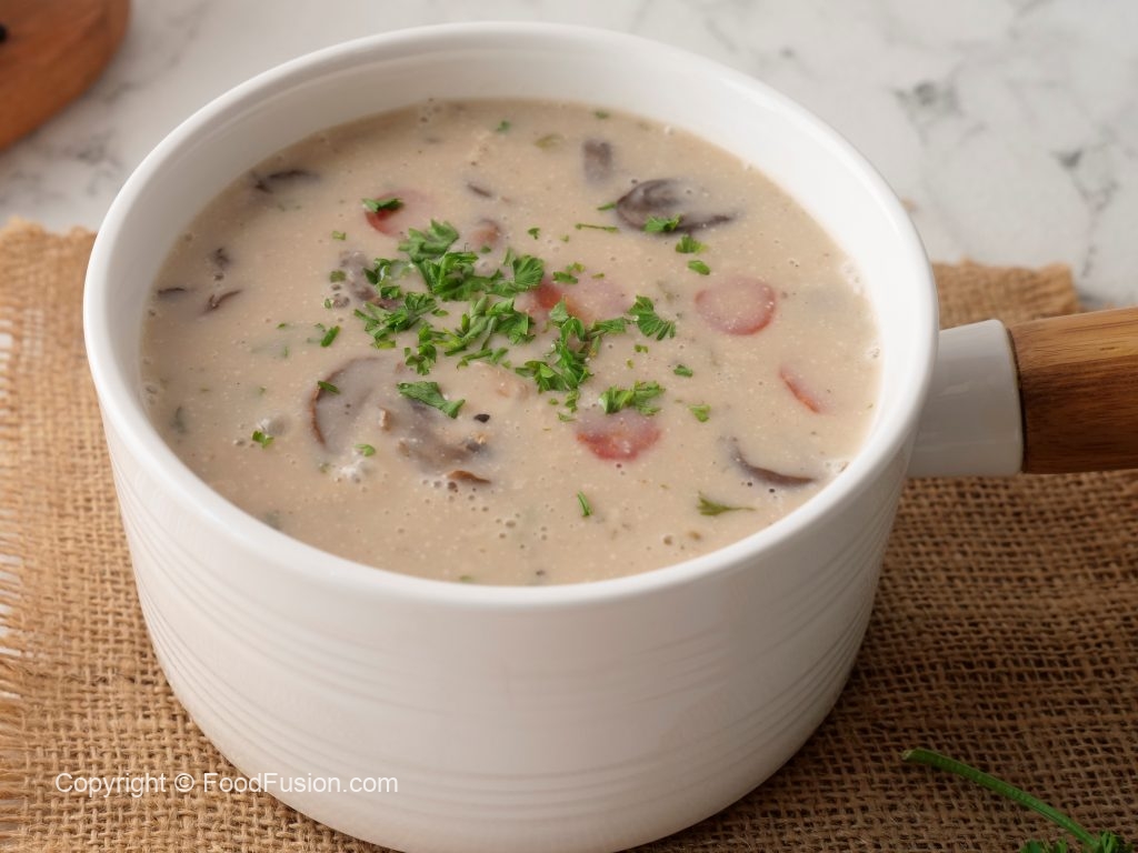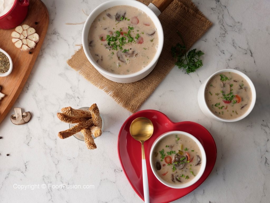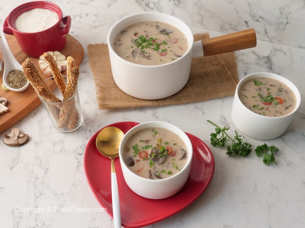 A perfect Creamy Chicken & Mushroom Soup to warm up your day. #HappyCookingToYou #FoodFusion #OlpersCream