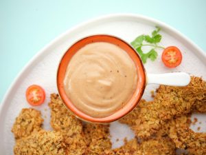 -Serve crispy chicken tenders with prepared sauce in lunch box!