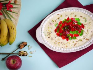 -Apples,bananas,fruit cocktail,pista aur badam dal ker ache tarhan mix karein & side per rakh dein
