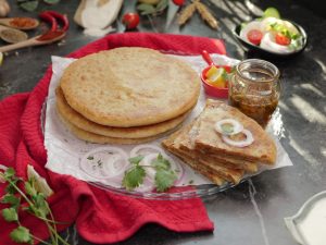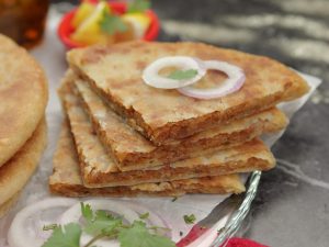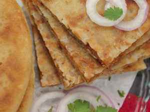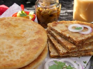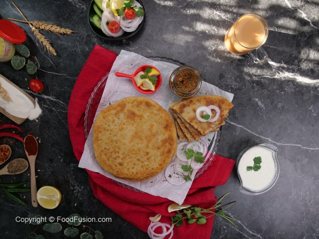 -On griddle,add desi ghee & let it melt & fry paratha on medium flame from both sides until golden brown (makes 5).