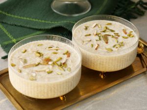 Garnish with pistachios,almonds,raisins & serve chilled.