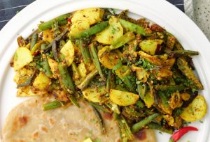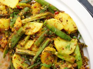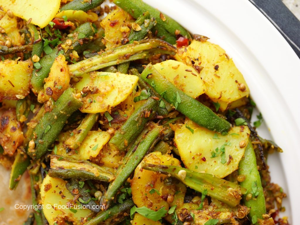 -Add fried okra & potatoes,mix well & cook for a minute.