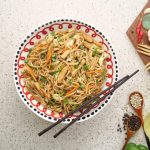 -In a wok,add cooking oil,carrots,capsicum,cabbage,mix well & sauté for a minute & set aside.