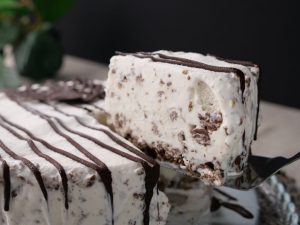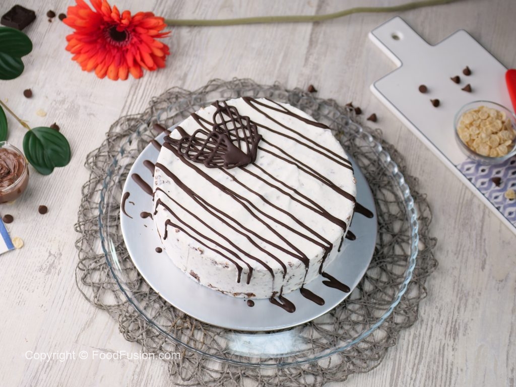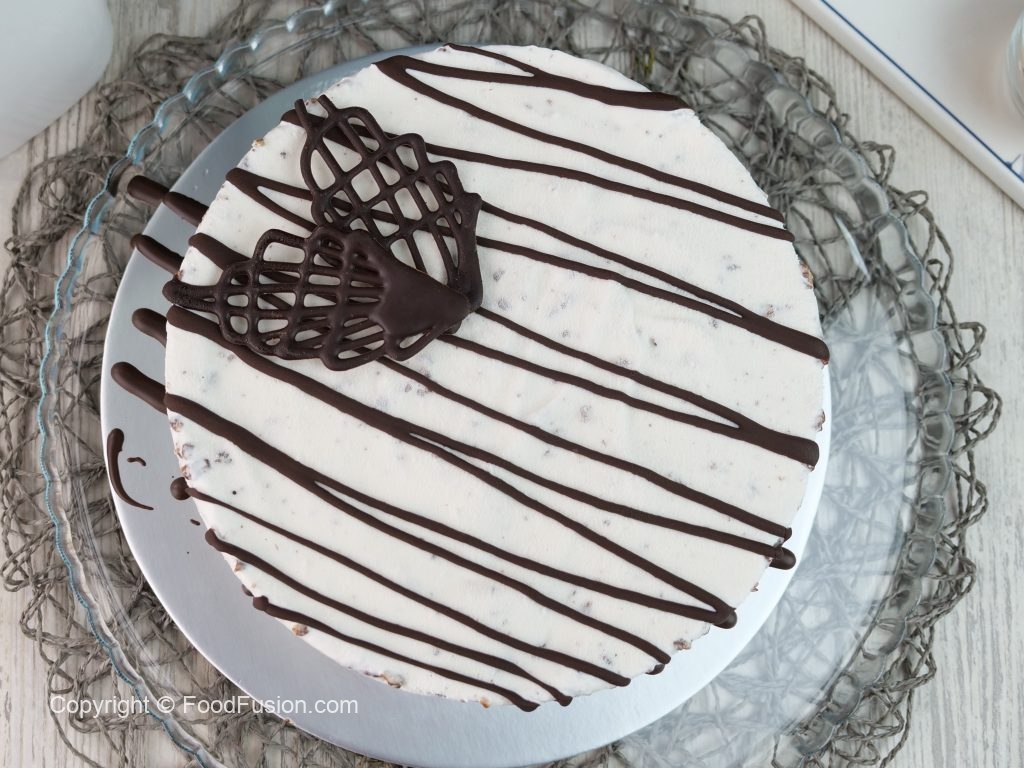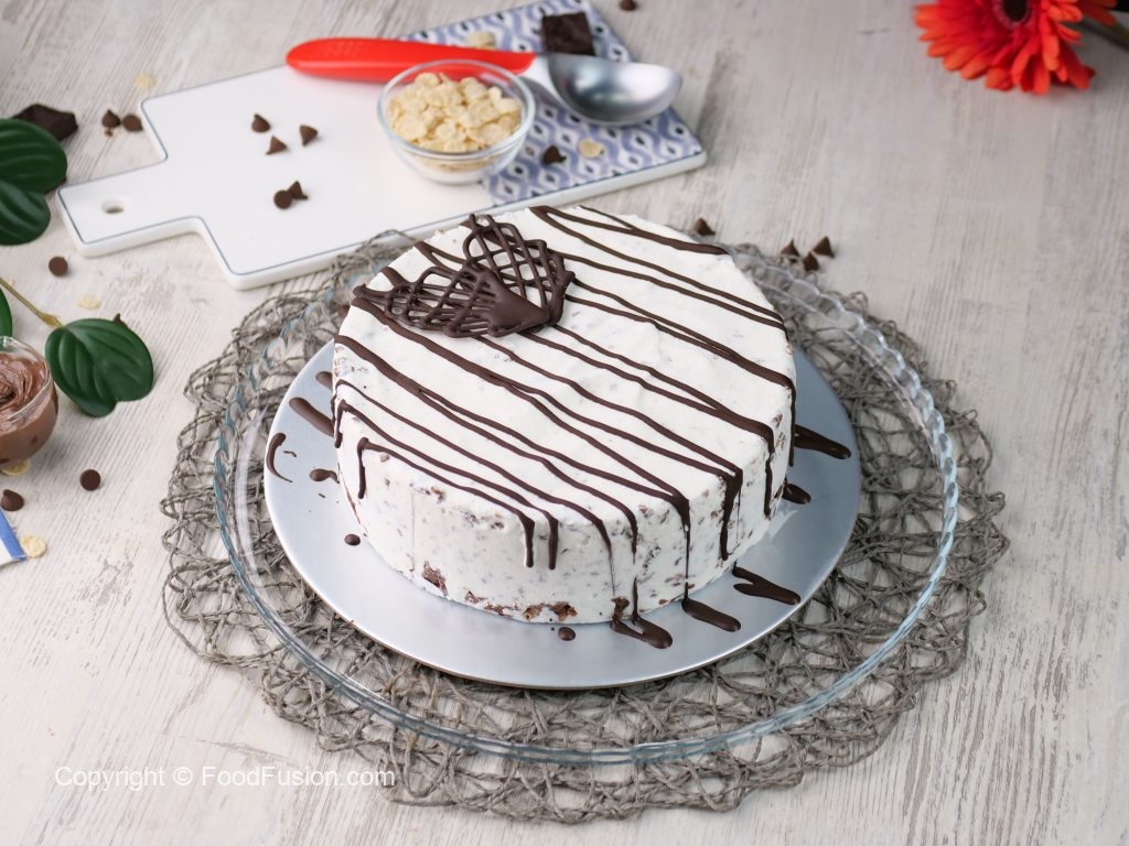-Ice cream cake ko carefully pan sa remove ker lein aur melted chocolate sa garnish ker ka serve karein!