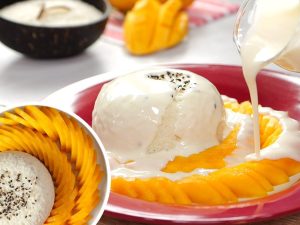 -Set baking dish mein ice cream dal ker evenly pheela lein aur 8-10 hours ya overnight kliya freeze ker lein.
