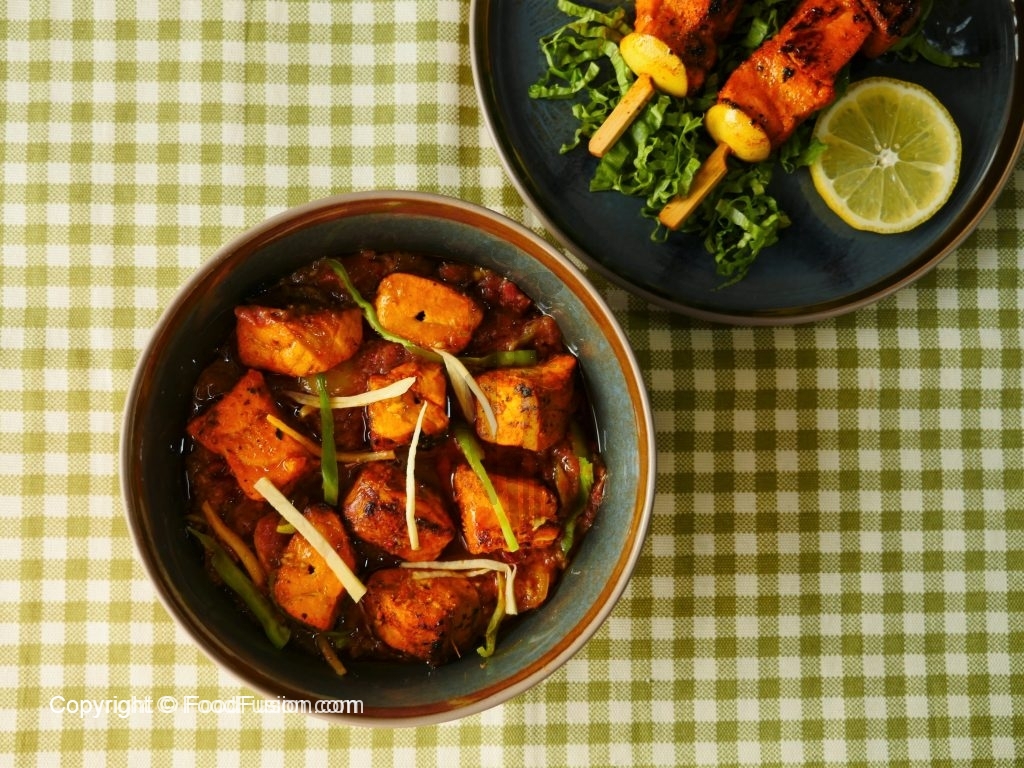 A perfectly cooked fish tikka. Try this recipe with and without gravy. You will love it both ways. #HappyCookingToYou