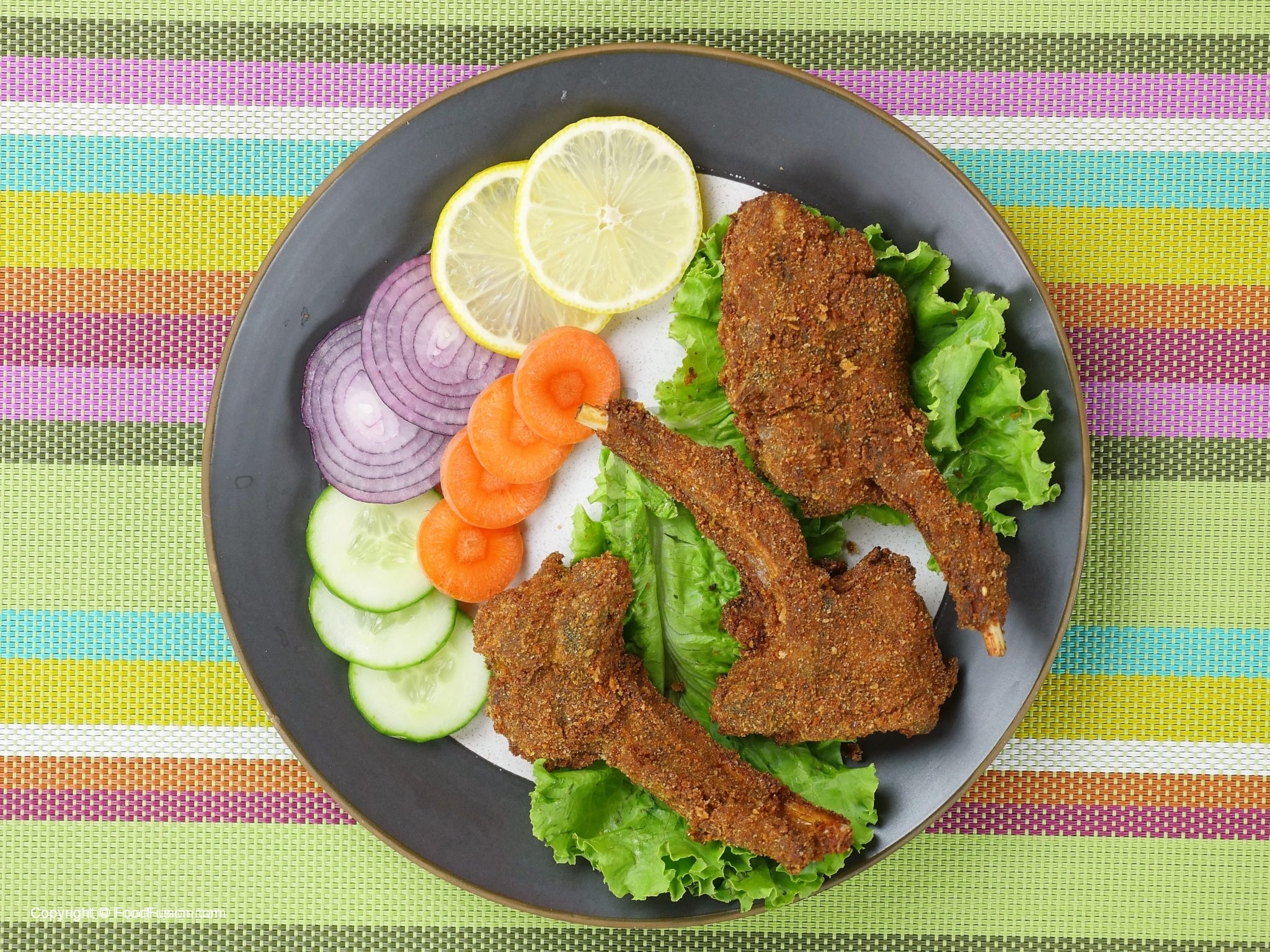 Chaanpon ko bread crumbs se coat karein and darmayani aanch pe deep golden fry karlein.
