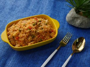 Boiled chawal shamil karein aur ache tarhan mix ker ka serve karein.